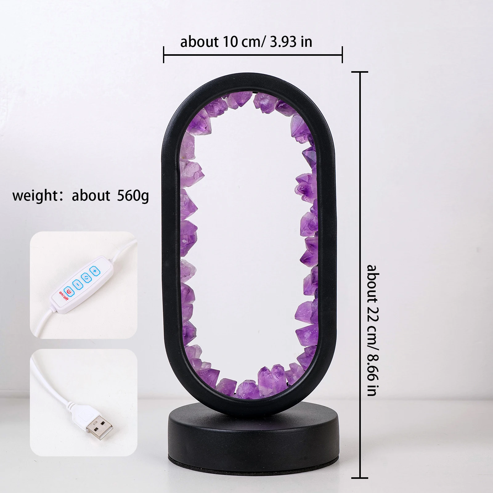 1PC Led Bedside Lamp Natural Quartz Amethyst Flowers Raw Stone Crystal Lamp Soothing Night Light for Bedroom and Desk