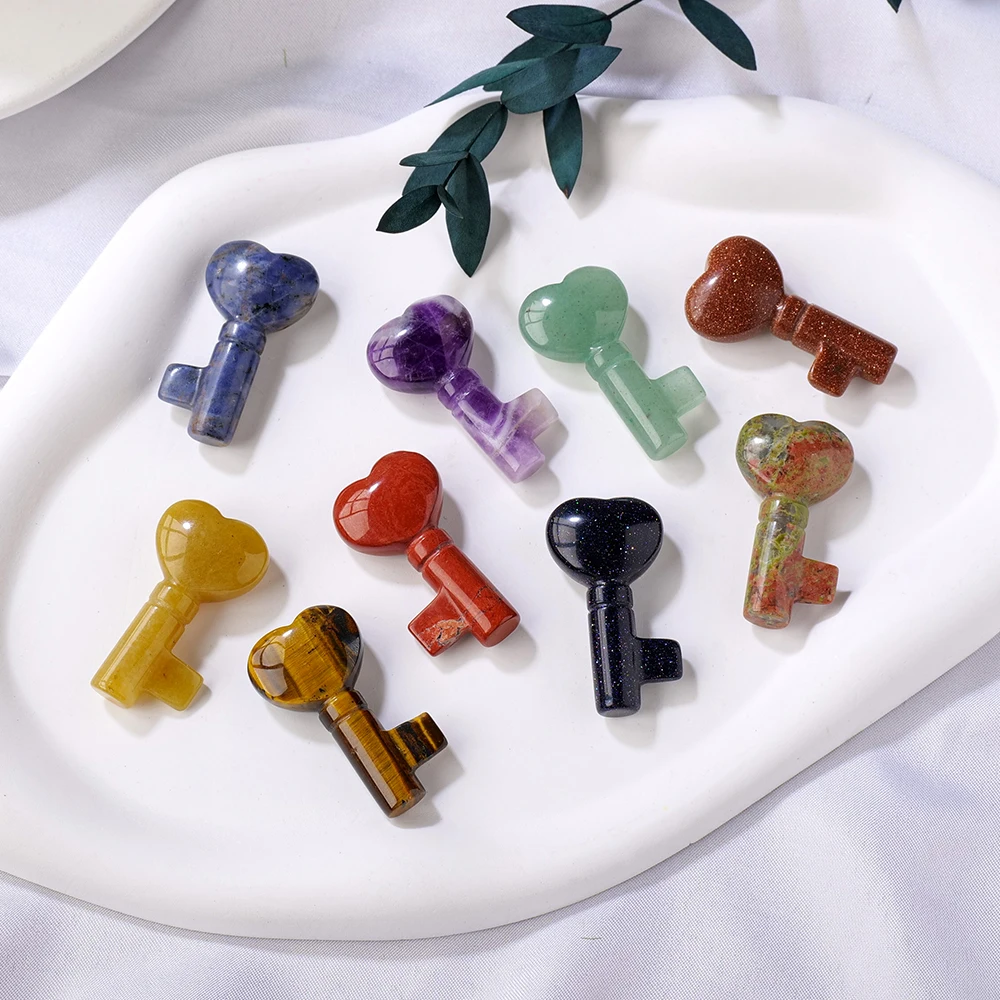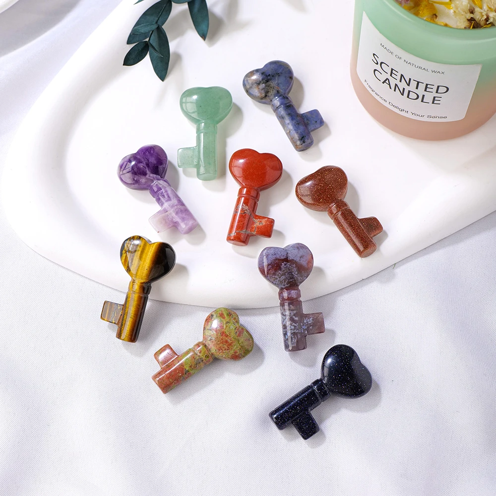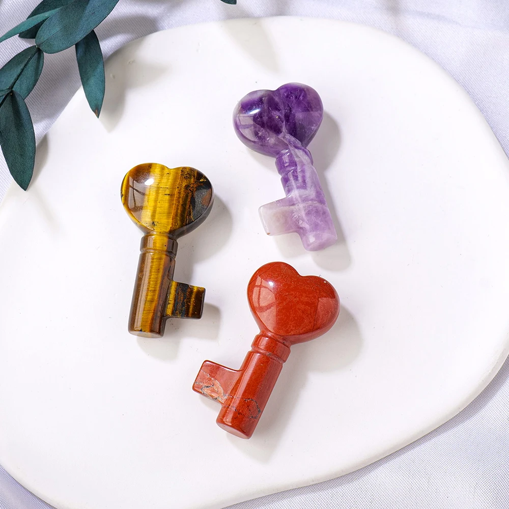 1PC Natural Crystal Stone Heart Key Shape Rose Quartz Amethyst Carving Gemstone DIY Jewelry Necklace